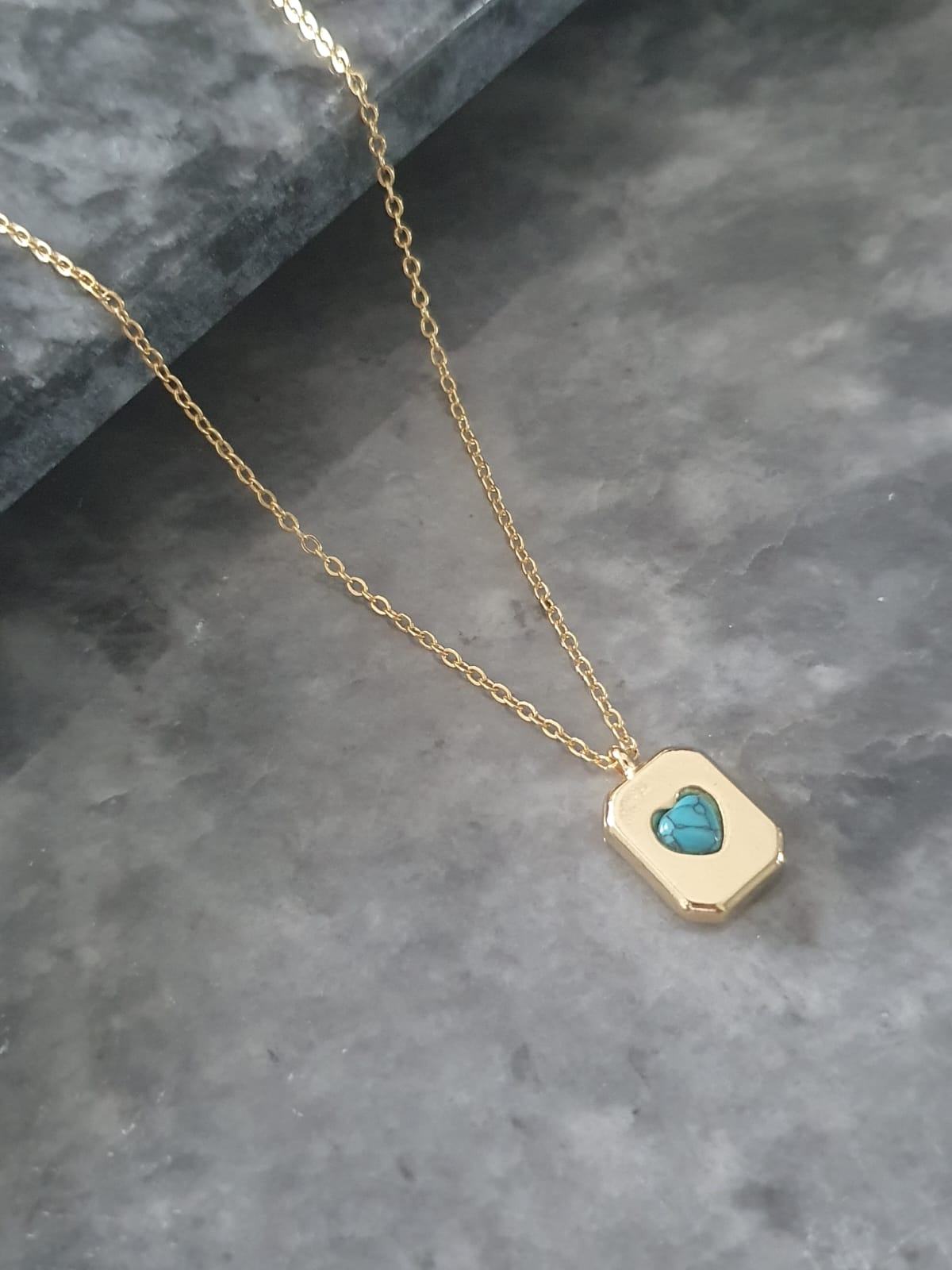 BS-23 Turkuaz Taşlı Kalp Kolye