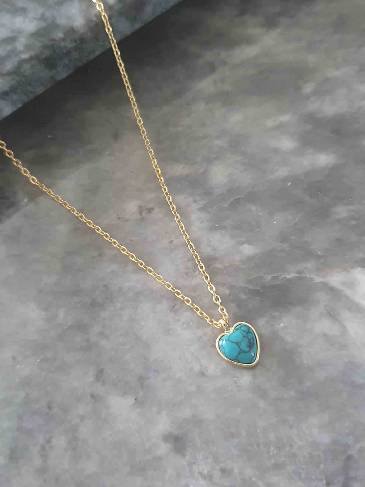 BS-23 Turkuaz Taşlı Kalp Kolye