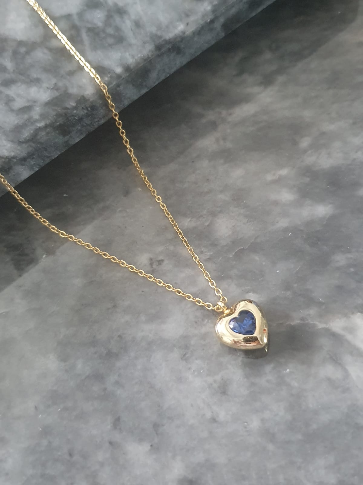 BS-24 Mavi Taşlı Dolgun Kalp Kolye