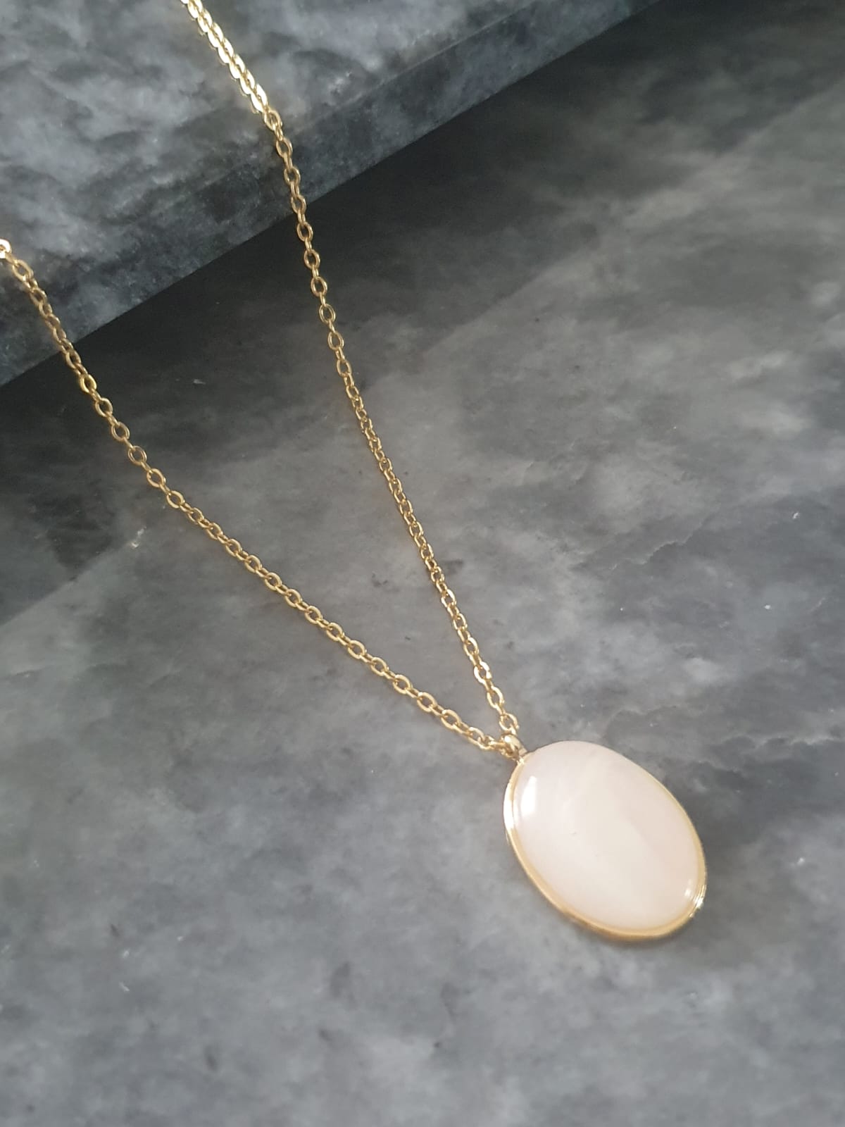 Malzeme: Lak kaplama (altın ton) Zincir Uzunluğu: 45 cm Ek Zincir (Uzatma): 5 cm Kolye Ucu Boyutu: Oval form Ağırlık: Hafif, gün boyu kullanım için ideal Renk: Pembe taş +...